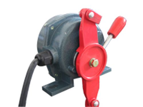 工作原理:當(dāng)膠帶運(yùn)輸機(jī)現(xiàn)場(chǎng)緊急事故時(shí),在沿線任意位置牽動(dòng)系在掛耳上的鋼絲繩,迫使機(jī)內(nèi)凸輪轉(zhuǎn)動(dòng)而驅(qū)動(dòng)微機(jī)開關(guān)動(dòng)作,發(fā)出停機(jī)信號(hào),達(dá)到停機(jī)效果,防止事故的擴(kuò)大。